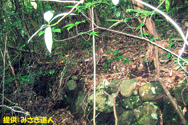 山中に石塁や土塁が残る