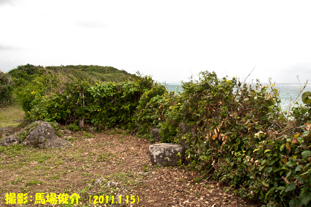 先島諸島の火番盛群とは別系列の逢火台(異国船等を見た場合は、ヒータティヤーから松明で慶良間諸島に知らせた)/島で一番高い海抜96mの丘上